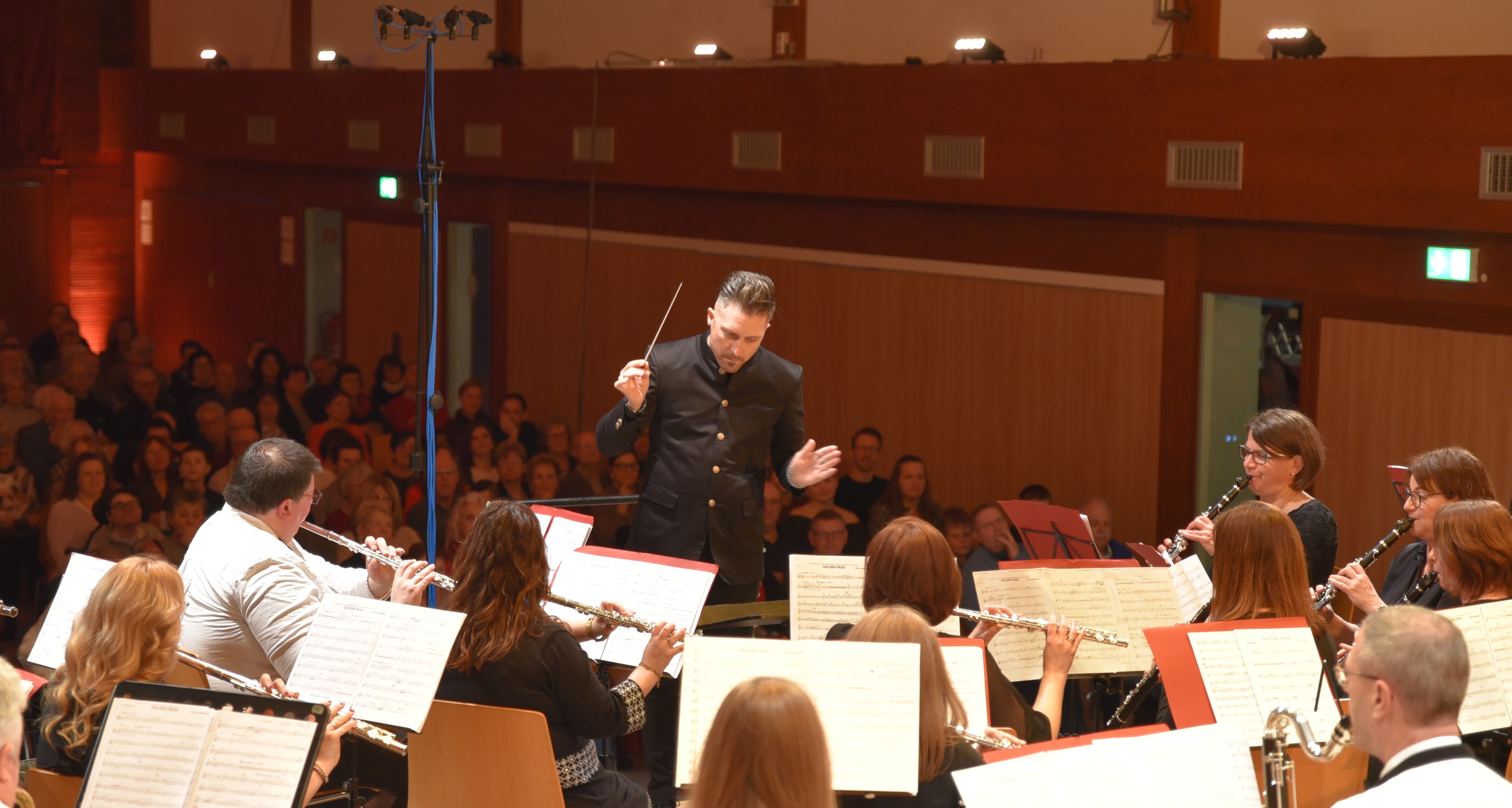 Beim Konzertmarsch „Die Sonne geht auf“ von Rudi Fischer machte er kurzzeitig seinen Platz für Jannik Stähle frei, der dem Publikum als neuer Vizedirigent vorgestellt wurde. „Jannik wird jetzt gleich sein Können zeigen. Damit nicht nur die Sonne in der Halle aufgeht, sondern auch ein neues Sternchen an unsrem Vereinshimmel“, kündigte Tabea Rudloff an, die gewohnt charmant und unterhaltsam durchs Programm führte.